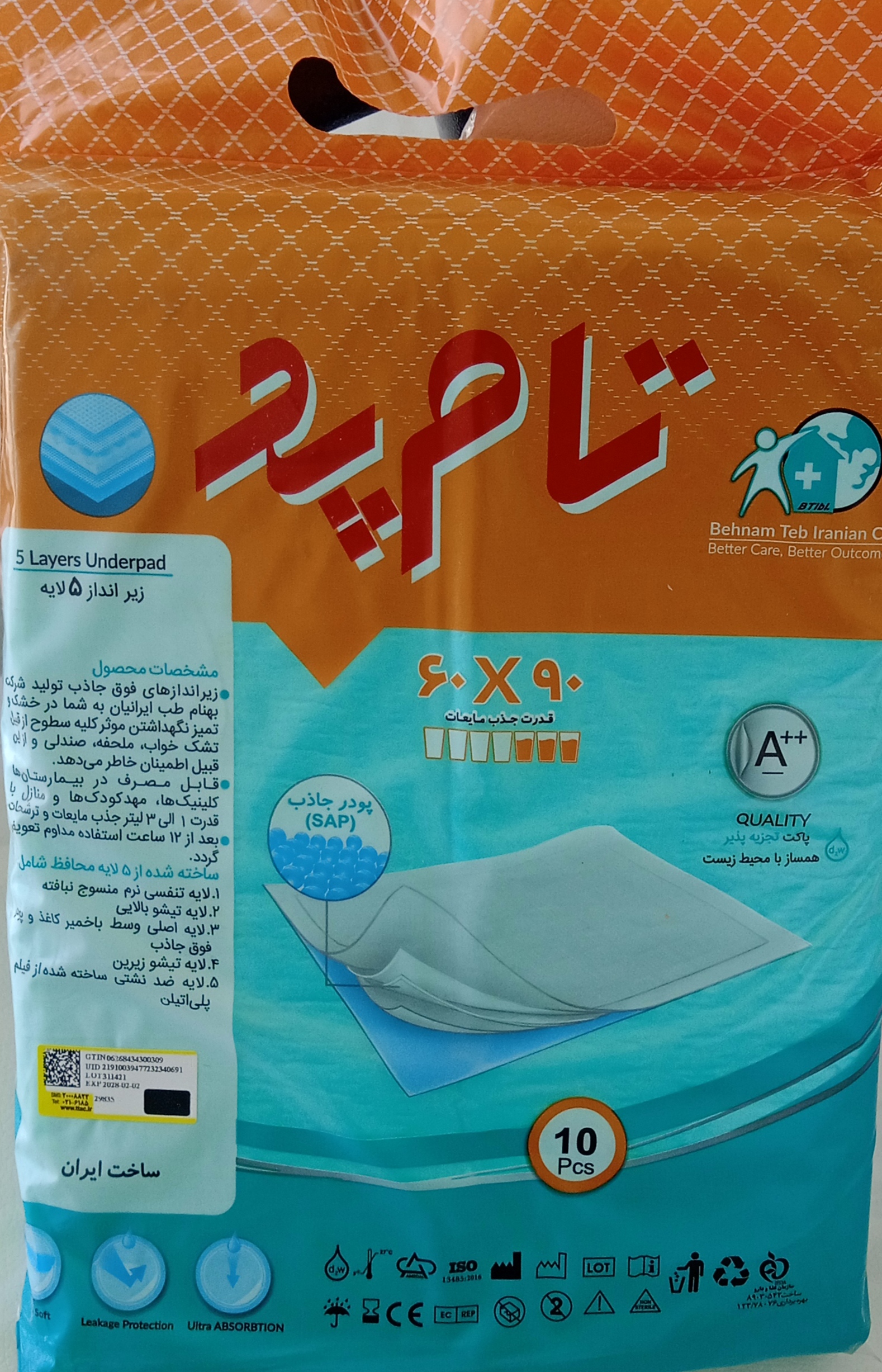 ناموجودزیرانداز بیمار ۵ لایه تام پد(ده عددی)